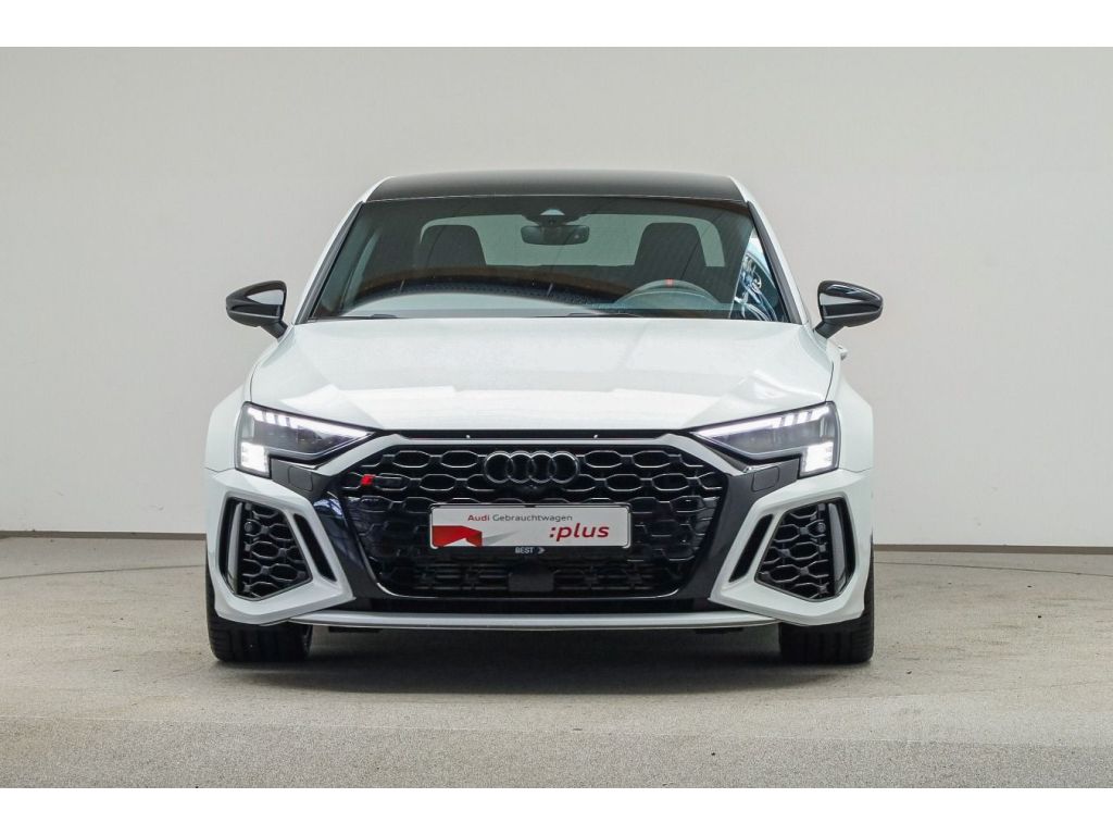 Highlights: Audi virtual cockpit plus mit zusätzlichem RS-Layout Bang Olufsen Premium Soundsystem mit 3D-Klang Assistenzsysteme: Licht-/Regensensor Audi pre sense front Reifendruck-Kontrollanzeige Spurverlassenswarnung Ausweichassistent und Abbiegeassistent Müdigkeitserkennung Halteassistent Adaptiver Geschwindigkeitsassistent Kamerabasierte Verkehrszeichenerkennung Mit Multifunktionskamera Multimedia: Datenmodul Europa MMI Radio plus Audi phone box MMI Navigation plus mit MMI touch Audi connect Navigation Infotainment plus LTE-Unterstützung für Audi phone box Digitaler Radioempfang Smartphone-Interface Technik Sicherheit: Scheinwerfer-Reinigungsanlage Tagfahrlicht Parkassistent mit Einparkhilfe plus Start-Stop-System Seitenairbags vorn mit Kopfairbagsystem und Interaktionsairbag vorn Airbags vorn, Beifahrerairbag deaktivierbar Abgaskonzept, EU6 AP Progressivlenkung Reifenreparaturset gesetzlicher Notruf Audi connect Notruf Service mit Audi connect Remote Control LED-Heckleuchten mit dynamischer Lichtinszenierung und dynamischem Blinklicht Matrix LED-Scheinwerfer mit dynamischer Lichtinszenierung und dynamischem Blinklicht Komfortschlüssel ohne Safelock Kindersitzbefestigung ISOFIX vorn, Top Tether und i-Size für die äußeren Fondsitze Audi drive select Komfortschlüssel mit sensorgesteuerter Gepäckraumentriegelung 3-Zonen-Komfortklimaautomatik Rückfahrkamera Abgedunkelte Matrix LED-Scheinwerfer mit dynamischer Lichtinszenierung und dynamischem Blinklicht Wegfahrsperre elektronisch Dämpfung hinten,Sportausführung Matrix LED-Scheinwerfer, LED-Heckleuchten und Scheinwerfer-Reinigungsanlage Interieur: Mittelarmlehne vorn Rücksitzlehne, geteilt umklappbar Sportkontur-Lederlenkrad, 3-Speichen, unten abgeflacht mit Multifunktion plus und Schaltwippen Sportsitze vorn Mikrofaser Dinamica/Kunstleder mono.pur 550-Kombination mit Rautensteppung und RS-Prägung 4-Wege-Lendenwirbelstütze für die Vordersitze Innenspiegel automatisch abblendend, rahmenlos Sitzheizung vorn Exterieur: Außenspiegelgehäuse in Schwarz Frontscheibe in Akustikverglasung Räder der Audi Sport / Quattro GmbH Audi Sport GmbH Räder, 5-Y-Speichen, schwarz matt, 9,0J8,0Jx19, Reifen 265/30245/35 R19 Optikpaket schwarz plus Komfortöffnung Gepäckraumklappe Sonnenschutzverglasung abgedunkelt Sonstiges: Adaptives Fahrwerk mit Audi drive select Einstiegs-LED mit RS-Projektion vorn Dekoreinlage Carbon Atlas Struktur Außenspiegel elektrisch einstell- und beheizbar Seitenschweller Standard Kindersicherung elektrisch betätigt quattro 4-Lenker-Hinterachse Ambiente-Lichtpaket plus 7-Gang-Automatikgetriebe für Allrad Anhebung der Höchstgeschwindigkeit auf 280 km/h RS-Exterieurumfänge in Schwarz glänzend Fußmatten vorn und hinten RS-Sportabgasanlage Audi Neuwagen-Reifengarantie Steckdose im Fond 12 V Entfall Leistungs- und Technologieschriftzug Interieurapplikationen Aluminiumoptik Sicherheitsgurte schwarz mit rotem Rand Audi Connect je nach Dienst zeitlich begrenzt, danach kostenpflichtig verlängerbar,