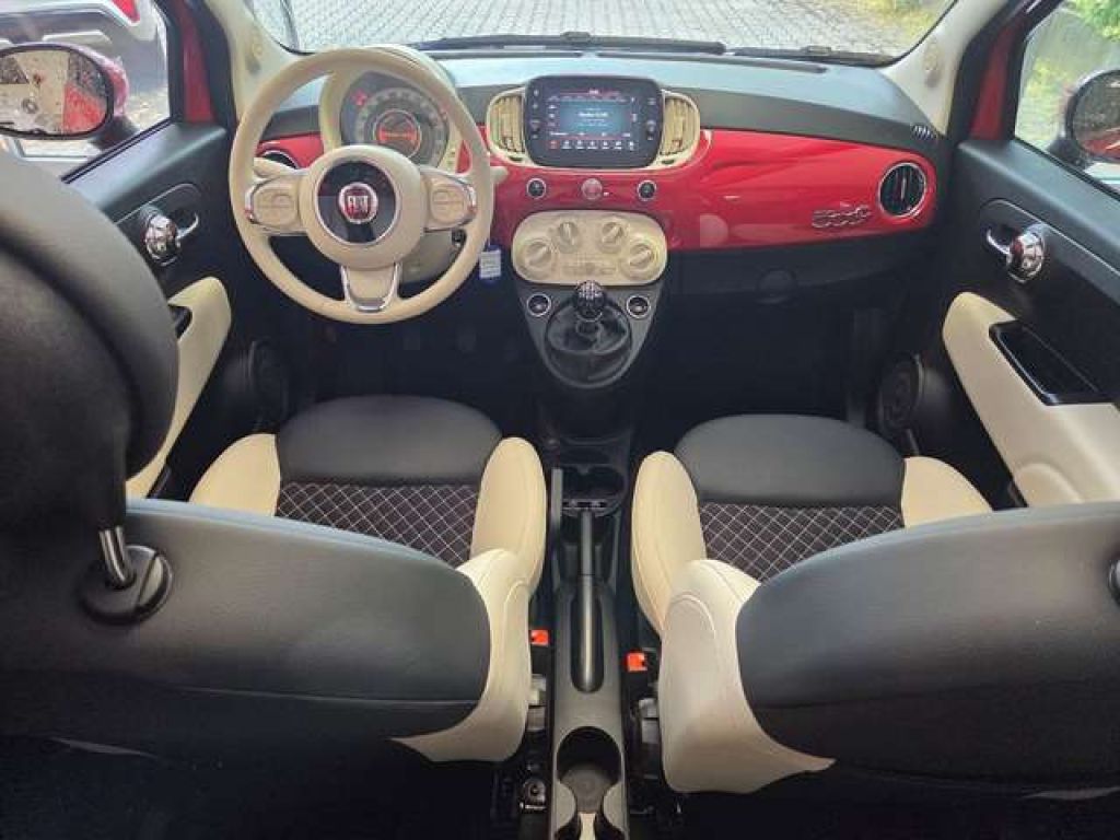 Fiat 500C Dolcevita 1.0 GSE Hybrid 52 kW (71 PS)Farbe: Passione RotPolster: Kunstleder / Stoff: Elfenbein / SchwarzAmbiente: ElfenbeinVerdeck: ElfenbeinGebrauchtwagen / sofort verfügbar / 1 Jahr Reparaturkostenversicherung (Car Garantie) inklusive /Gebrauchtwagenzertifizierung durch unabhängiges Prüfgutachten vorhandenSonderausstattung: Außenspiegel elektr. verstell- und heizbar, Einparkhilfe hinten, Rücksitzlehne geteilt umklappbar, Seitenscheiben hinten und Heckscheibe abgedunkelt, Uni-Lackierung (Sonderfarbe), Fußmatten und Kombitasche. Weitere Ausstattung: Elektrisches Stoff-Faltdach mit beheizbarer Heckscheibe aus Glas, 6-Gang-Schaltgetriebe, Airbag Fahrer-/Beifahrerseite, Antriebs-Schlupfregelung (ASR), Armaturenbrett farbig, Automatische Türverriegelung, Fahrassistenz-System: Berganfahrhilfe, Fahrassistenz-System: Bremsassistent, Geschwingigkeitsregelanlage und Geschwindigkeitsbegrenzeranlage, Heckscheibe heizbar, Infotainment-System: UConnect 7" Touchscreen Radio mit MP3-Player, USB, Bluetooth und DAB Radioempfang, Isofix-Aufnahmen für Kindersitz an Rücksitz, Karosserie: 2-türig, Klimaanlage, Knieairbag Fahrerseite, Kopfstützen vorn verstellbar, 15" Leichtmetallfelgen, Lederlenkrad mit Multifunktionstasten höhenverstellbar, Motor 1,0 Ltr. - 52 kW (Mild-Hybrid), Motor-Schleppmoment-Regulator (MSR), Otto-Partikelfilter (OPF), Reifendruck-Kontrollsystem, Schadstoffarm nach Abgasnorm Euro 6d, Seitenairbag vorn, Sitz vorn links höhenverstellbar, Smartphone kabellose Schnittstelle (Navigation via Apple CarPlay & Android Auto), Start/Stop-Anlage, Steckdose (12V-Anschluß) vorn, Tagfahrlicht LED, Wärmeschutzverglasung, Zentralverriegelung mit Fernbedienung. Es freut sich auf Ihren Anruf: Herr Daniel Lechler und Herr Birol Yildirim.Tel.: 07231 139390 Standort: Kleinmann Automobile GmbHStuttgarter Straße 4475179 Pforzheim Gerne bieten wir Ihnen an: FinanzierungLeasingInzahlungnahme Ihres FahrzeugesProbefahrt ZWISCHENVERKAUF, IRRTÜMER UND TIPPFEHLER VORBEHALTEN. Die im Internet gemachten Angaben sind unverbindliche Beschreibungen. Sie stellen keine zugesicherten Eigenschaften dar.Weitere Informationen zum offiziellen Kraftstoffverbrauch und zu den offiziellen spezifischen CO2-Emissionen und gegebenenfalls zum Stromverbrauch neuer Pkw können dem 'Leitfaden über den offiziellen Kraftstoffverbrauch, die offiziellen spezifischen CO2-Emissionen und den offiziellen Stromverbrauch neuer Pkw' entnommen werden, der an allen Verkaufsstellen und bei der 'Deutschen Automobil Treuhand GmbH' unentgeltlich erhältlich ist unter www.dat.de.