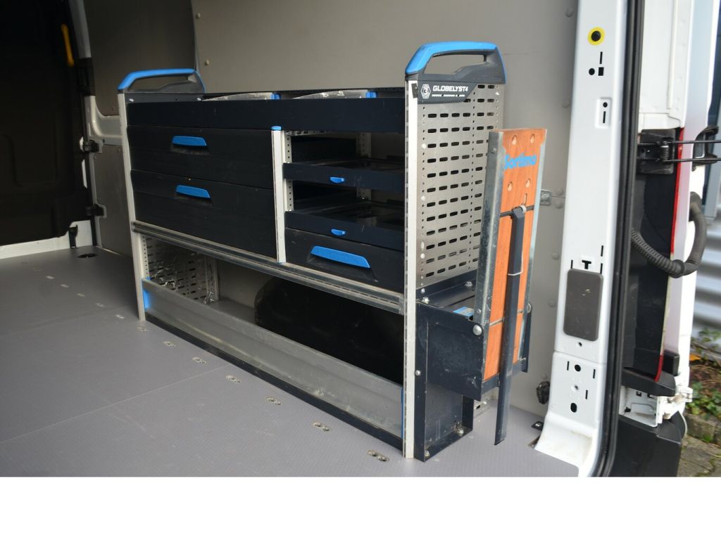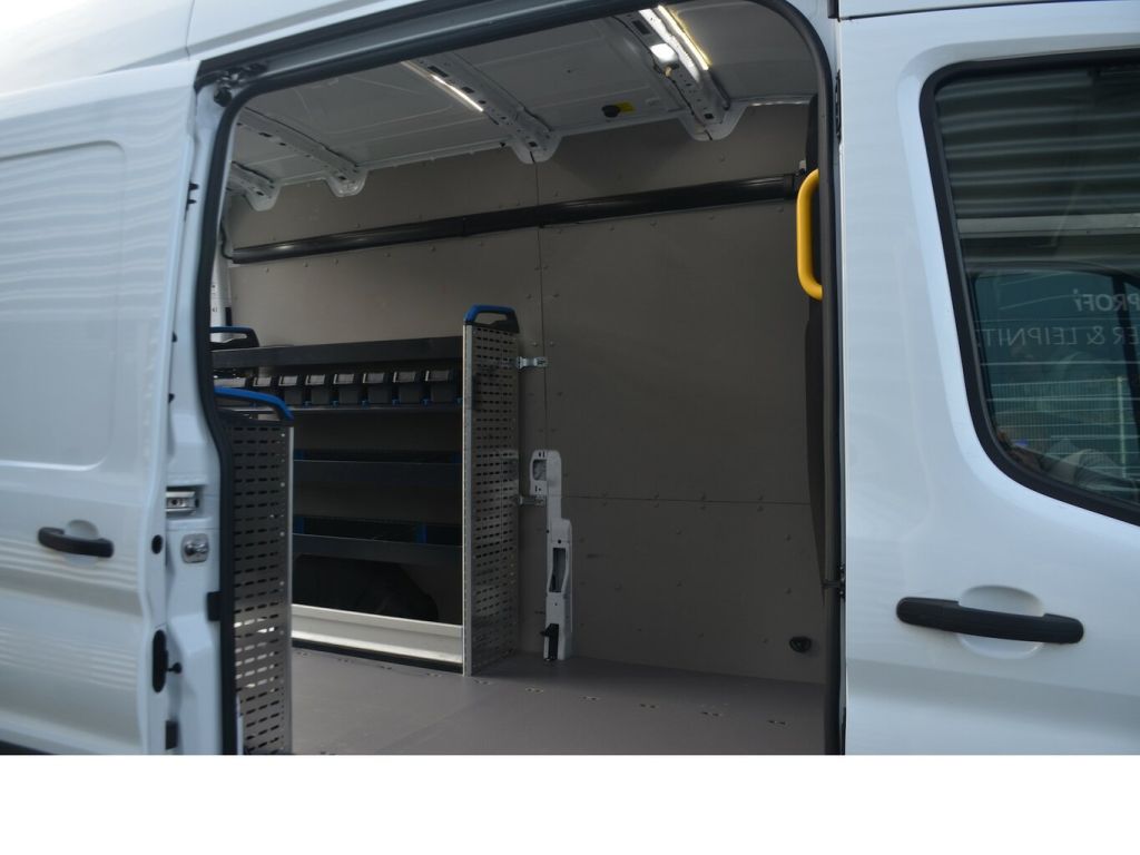 Gepflegter Ford Transit 350 2.0 CDTi mit dem guten 130 PS Motor, dazu konfiguriert in sehr umfangreicher Ausstattung wie z. B. Standheizung mit Funkfernbedienung und Vorwahluhr, Tempomat, Regalsystem beidseitig,