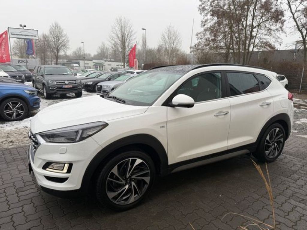 Dieser gepflegte Hyundai TUCSON aus dem Jahr 2020 präsentiert sich in makellosem Weiß mit schwarzer Lederausstattung. Mit nur einem Vorbesitzer und lückenloser Servicehistorie bietet dieser Allrad-SUV höchste Zuverlässigkeit. Der 185 PS starke Dieselmotor mit Euro 6 Norm und Automatikgetriebe sorgt für kraftvolle und effiziente Fahrleistungen. Die umfangreiche Ausstattung umfasst ein Panorama-Glasdach, elektrische Heckklappe und beheizbare Vorder- und Rücksitze. Das moderne Infotainmentsystem mit Navigation, Apple CarPlay und Android Auto bietet optimale Konnektivität. Zahlreiche Assistenzsysteme wie Spurhalteassistent, Totwinkelwarner und adaptiver Tempomat erhöhen den Fahrkomfort und die Sicherheit. Die 2-Zonen-Klimaautomatik und das beheizte Lenkrad sorgen für angenehmes Raumklima.