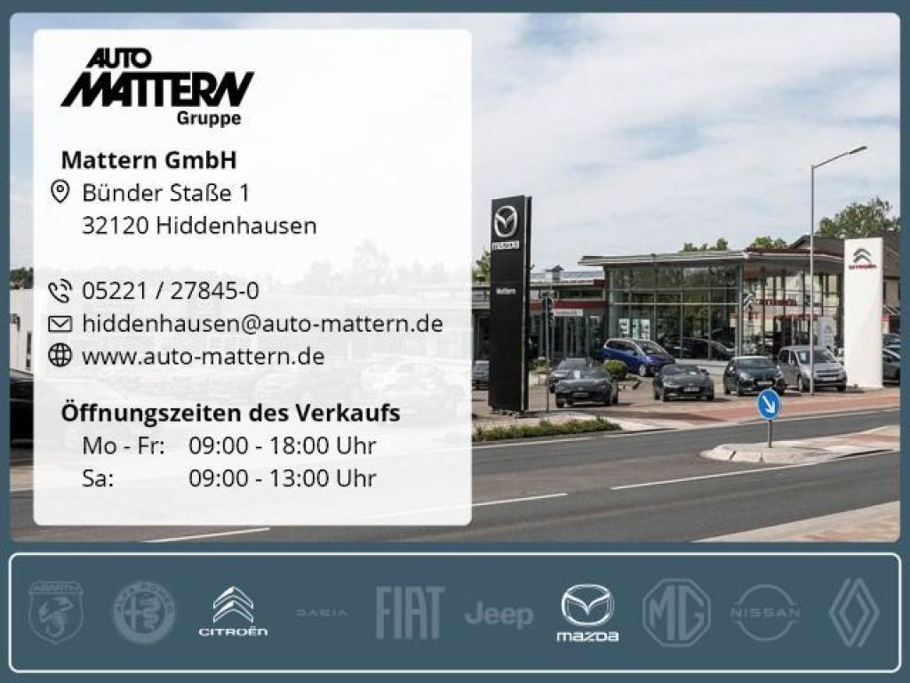 Assistenzsysteme: Anti-Blockier-System (ABS) Dynamische Stabilitätskontrolle (DSC) Elektron. Traktionskontrolle Fahrassistenz-System: Berganfahrhilfe Fahrassistenz-System: Notbrems-Assistent Fahrassistenz-System: Spurhalteassistent Geschwindigkeits-Regelanlage Lichtassistent (Coming Home, Leaving Home) Reifendruck-Kontrollsystem Multimedia: 6 Lautsprecher Audiosystem: Radioanlage Erweiterte Smartphone-Integration (Apple CarPlay und Android Auto) Freisprecheinrichtung mit Voice-Control und Bluetooth Radioempfang digital (DAB+) Sprachsteuerung, erweiterter Umfang USB-Anschluss und AUX-IN-Anschluss Technik Sicherheit: Airbag Beifahrerseite Airbag Fahrerseite Außenspiegel elektr. verstell- und heizbar, beide Fensterheber elektrisch vorn + hinten Getriebe 6-Gang Isofix-Aufnahmen für Kindersitz Klimaanlage Kopf-Schulter-Airbag hinten Kopf-Schulter-Airbag vorn Schadstoffarm nach Abgasnorm Euro 6d Scheinwerfer LED Seitenairbag vorn Servolenkung elektro-hydraulisch Start-Stop-Knopf Start/Stop-Anlage (i-Stop) Tagfahrlicht Wegfahrsperre (elektronisch) Zentralverriegelung mit Fernbedienung Interieur: Audiobedienung am Lenkrad Lenkrad mit Multifunktion Multi-Info-Display Rücksitzlehne geteilt/klappbar Sitzbezug / Polsterung: Stoff Touchscreen-Farbdisplay (8,0 Zoll) Exterieur: LM-Felgen Metallic-Lackierung Seitenscheiben hinten und Heckscheibe abgedunkelt Sonderlackierung Matrix-Grau Metallic Sonstiges: Auspuffblende (Chrom) Colorverglasung Fahrassistenz-System: Fahrdynamikregelung G-Vectoring Control Plus mit Bremseingriff Lenkrad (Sport/Leder, 3-Speichen) Lenksäule (Lenkrad) höhenverstellbar Modellpflege Motor 1,5 Ltr. - 55 kW 16V KAT Multi-Commander Schalt-/Wählhebelgriff Leder Sitz vorn links höhenverstellbar Sonderlackierung Machine-Grau Metallic Sonnenblenden mit Make-up-Spiegel 36 Monate Herstellergarantie ab Tag der Erstzulassung, Angaben zum Hersteller: Mazda Motors (Deutschland) GmbH, Mazda, Hitdorfer Straße 73, 51371 Leverkusen, 02173-943 0, info(at)mazda.de Drehmoment 143, Ladevolumen 280 l, Maximales Ladevolumen 950 l, Haftpflicht 17, Teilkasko 21, Vollkasko 19 Die angegebenen Verbrauchsangaben beziehen sich auf WLTP-Werte. Zwischenverkauf und Irrtümer für dieses Angebot sind ausdrücklich vorbehalten. Ausschlaggebend sind einzig und allein die Vereinbarungen in der Auftragsbestätigung oder im Kaufvertrag. Den genauen Ausstattungsumfang, die genauen Kilometer und den Verkaufspreis erhalten Sie von unserem Verkaufspersonal. Bitte kontaktieren Sie uns.