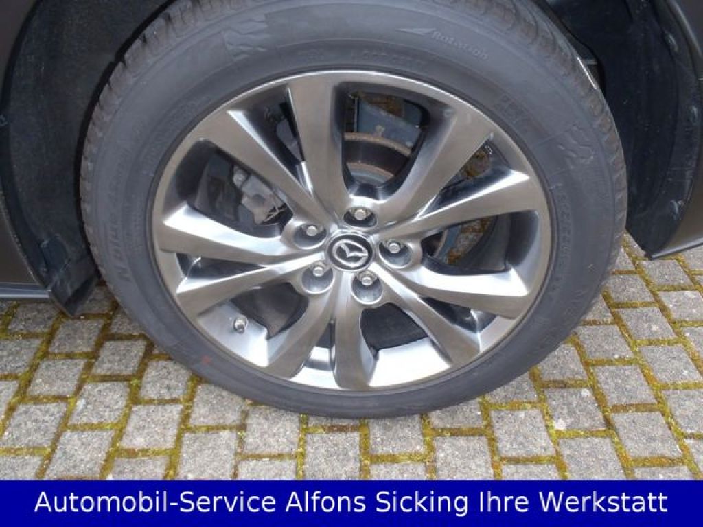 3. Bremsleuchte, Active Info-Display (Instrumentenanzeige digital), Airbag Beifahrerseite, Airbag Fahrerseite, Airbagsystem Beifahrerseite abschaltbar, Audiobedienung am Lenkrad, Automatik-Sicherheitsgurte vorn und hinten, Außenspiegel elektr. anklappbar, Außenspiegel elektr. verstell- und heizbar, beide, Außenspiegel mit Abblendautomatik, Blinkleuchte in Außenspiegel integriert, Brillenfach in Dachhimmel / Dachkonsole integriert, Colorverglasung, Dachhimmel grau, Einparkhilfe hinten, Einparkhilfe vorn, Einschaltautomatik für Fahrlicht, Elektr. Bremskraftverteilung, Elektron. Traktionskontrolle, Erweiterte Smartphone-Integration (Apple CarPlay und Android Auto), Fahrassistenz-System: Berganfahrhilfe, Fahrassistenz-System: City-Notbremsfunktion (SCBS), Fahrassistenz-System: Fahrdynamikregelung G-Vectoring Control, Fahrassistenz-System: Fernlichtassistent, Fahrassistenz-System: Müdigkeitserkennungs-Sensor (DAA), Fahrassistenz-System: Spurhalteassistent, Fahrassistenz-System: Spurwechselassistent Plus (BSM), Fahrassistenz-System: Verkehrszeichenerkennung (TSR), Farbdisplay (8,8 Zoll), Fensterheber elektr. vorn und hinten mit Komfortschaltung, Fensterzierleisten verchromt, Freisprecheinrichtung mit Voice-Control und Bluetooth, Gepäckraumabdeckung / Rollo, Gurtstraffer vorn, Heckklappe/-Deckel elektr. betätigt (öffnen + schliessen), Heckleuchten LED, Innenspiegel mit Abblendautomatik, Isofix-Aufnahmen für Kindersitz, Karosserie: 5-türig, Klimaautomatik, Knieairbag Fahrerseite, Kopf-Schulter-Airbag vorn und hinten, Lenkrad (Sport/Leder, 3-Speichen), Lenkrad heizbar, Lenksäule (Lenkrad) höhenverstellbar, Lenksäule (Lenkrad) längsverstellbar, Lichtassistent (Coming Home, Leaving Home), Make-up-Spiegel beleuchtet, Mild-Hybrid 132 kW SPCCI (Motor 2,0 Ltr. - 132 kW), Multi-Commander, Navigationssystem: SD-Karten-Navigation, Notbrems-Warnblinkautomatik (ESS), Notrufsystem, Otto-Partikelfilter (OPF), Parkbremse elektrisch, Radioempfang digital (DAB), Radstand 2655 mm, Reifen-Reparaturkit, Reifendruck-Kontrollsystem, Rückfahrkamera, Rücksitz-Klappsystem (Karakuri-System), Rücksitzlehne geteilt/klappbar, Schadstoffarm nach Abgasnorm Euro 6d, Schalt-/Wählhebelgriff Leder, Scheibenwischerenteiser vorn, Seitenairbag vorn, Sitz vorn rechts höhenverstellbar, Sitzheizung vorn, Sprachsteuerung, erweiterter Umfang, Start-Stop-Knopf, Start/Stop-Anlage (i-Stop), Türgriffe außen Wagenfarbe, USB-Schnittstelle, Wegfahrsperre (elektronisch)