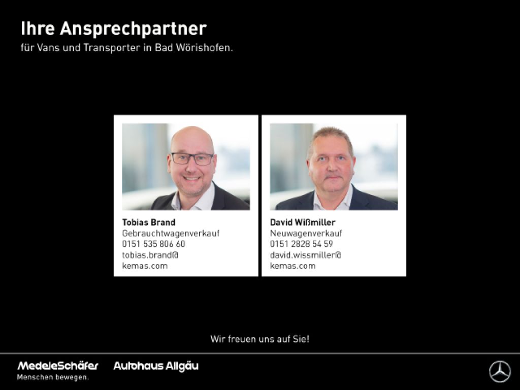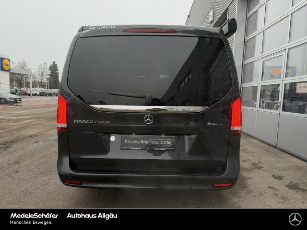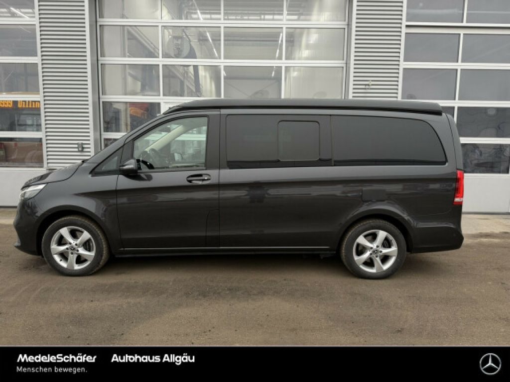 ZG2 Allrad permanent, FP5 Sport-Paket Exterieur, CA4 Airmatic, ET4 Aktiver Abstands-Assistent DISTRONIC, D27 Schiebe-Hebe-Dach elektrisch (Glas), LG2 LED Intelligent Light System, G43 9G-TRONIC, E66 Sound-System, JS1 360°-Kamera, EZ8 Parktronic, W68 Easy-Pack Heckklappe, H15 Sitzheizung für Beifahrer, CU4 Aerodynamik-Paket, JP2 Fahrassistenz-Paket, EZ6 Park-Paket mit 360 Grad-Kamera, FP3 Spiegel-Paket, BA3 Aktiver Brems-Assistent, JW8 Attention Assist, E07 Berganfahrhilfe, MJ8 ECO Start-Stop Funktion, LA2 Fahrlichtassistent, JW5 Spurhalteassistent, JA7 Totwinkel-Assistent, JA9 Verkehrszeichen-Assistent, HH4 Klimatisierungsautomatik Thermotronic, JF1 Regensensor, JP1 PRE-SAFE ® -System, XY4 Modelljahr 4, HZ1 Warmluft- Zusatzheizung, H00 Warmluftkanal zum Fahrgastraum, HZ0 Zuheizer elektrisch, RL8 Leichtmetallräder 7 J x 17, EY5 Mercedes-Benz Notrufsystem, CL3 Lederlenkrad, CL4 Multifunktionslenkrad mit Reiserechner, JK5 Kombiinstrument mit Farbdisplay, F65 Außenspiegel, automatisch heranklappbar, LE1 Adaptives Bremslicht, T55 Elektr. Betätigung für Schiebetür rechts, W05 Fenster hinten, links fest, rechts ausstellbar, MX0 BlueEFFICIENCY-Paket, SH1 Thorax-Pelvis-Sidebag Fahrer, SH9 Windowbags für Fahrer und Beifahrer, SA6 Beifahrerairbag, SH2 Thorax-Pelvis-Sidebag Beifahrer, E1D Digitales Radio (DAB), SB6 Komfort-Beifahrersitz drehbar, SB5 Komfort-Fahrersitz drehbar, SE4 Lordosenstütze Beifahrersitz, SE5 Lordosenstütze Fahrersitz, UR1 Sitzschienensystem mit Schnellverriegelung, ZK0 Aufstelldach EASY UP, elektrohydraulisch, ZK8 Dachbett, V36 Dachverkleidung, CM2 Stoßfänger und Anbauteile in Wagenfarbe lackiert, XC9 COC-Papiere, W64 Heckscheibe separat zu öffnen, E28 Batterie zusätzlich für Nachrüst-Verbraucher, RG7 Bereifung 225/55 R17, RM4 Komfortbereifung, RM7 Sommerreifen, F66 Abschließbares Handschuhfach, KP7 Abgasreinigung SCR Generation 4, XM4 Akustikpaket, LC9 Ambientebeleuchtung im Cockpit, LC0 Ambientebeleuchtung Marco Polo-Schrankmodul, Q00 Anhängelast 0 kg/lbs, Z6M Aufstelldach in Wagenfarbe lackiert, LB9 Ausstiegsleuchten, F72 Außen-/Innenspiegel mit Abblendautomatik, F69 Außensp.elektr.verst.-u.beheizb.m.integr.Blinkl., IB6 Baureihe C447 Vito/V-Klasse, FS5 Beleuchtete Spiegel für Sonnenblenden, LC7 Beleuchtung für Fußraum vorne, V53 Bodenbelag in Steinoptik anthrazit, BS1 Bremssättel mit Mercedes-Benz Schriftzug, YF5 Campingtisch, BB7 CO2-optimierte Bremsanlage, W70 Colorverglasung im Fond, Schwarzglas, FG9 Cupholder aufsteckbar in Armlehnen hinten, FY1 Diebstahlschutz-Paket, EX9 Digitales Extra: 3 Jahre Karten-Updates kostenfrei, E1E Digitales Extra: Festplatten-Navigation, EW6 Digitales Extra: Remote Services Plus, E4S Digitales Extra: Smartphone Integration, E7B Digitales Extra: Vorrüstung für Navigation, E1F Display-Diagonale 26 cm (10,25"), FC1 Elektronischer Schlüssel in Chromoptik, MO6 Emissionsklasse Euro 6d-TEMP M/N1 GR. II, M72 Fahrzeug HVO fähig, K51 Fehlbetankungsschutz, W17 Fenster v. rechts, fest in Seitenwand/Schiebetür, LG8 Fernlichtassistent PLUS, YF7 Feuerlöscher 1 kg, VB3 Fliegen / Mückengitter für Schiebefenster, X6A Frontöffnung Aufstelldach, C70 Fußgängerschutz, VL2 Fußmatten Velours, M60 Generator 14 V / 250 A, XA8 Gewichtsvariante 3.100 kg, J55 Gurtwarneinrichtung für Beifahrer, KB5 Haupttank 70 Liter, F48 Heizung für Scheibenwaschanlage, X99 Hersteller Mercedes-Benz AG, BH1 HOLD-Funktion, VD6 Innenhimmel porzellan, T70 Kindersicherung an Türen im Fahrgastraum, HZ7 Klimaanlage halbautom. geregelt, TEMPMATIC im Fond, LC4 Komfort-Dachbedieneinheit, FZ8 Komfort-Öffnung u.Schließung mit IR-Fernbedienung, JH3 Kommunikationsmodul (LTE) für digitale Dienste, HX1 Kältemittel R-1234yf, CL1 Lenkrad in Neigung und Höhe verstellbar, EY2 Live Traffic Information, IK3 Luxuskombi, ZK7 Marco Polo, Z66 MARCO POLO EDITION, JA3 MBAC - Mercedes-Benz Advanced Control, E6H MBUX Multimediasystem High, EX8 MBUX Navigation Plus, XO7 Mercedes-Benz Mobilo mit DSB und GgD, IL6 Metallic-Lack, FG0 Mittelkonsole mit Rollo, XM0 Modellpflege, MU4 Motor OM 654 DE 20 LA 120 kW (163 PS) 3800/min, E1T TouchpadIhr persönlicher Ansprechpartner für dieses Fahrzeug:
