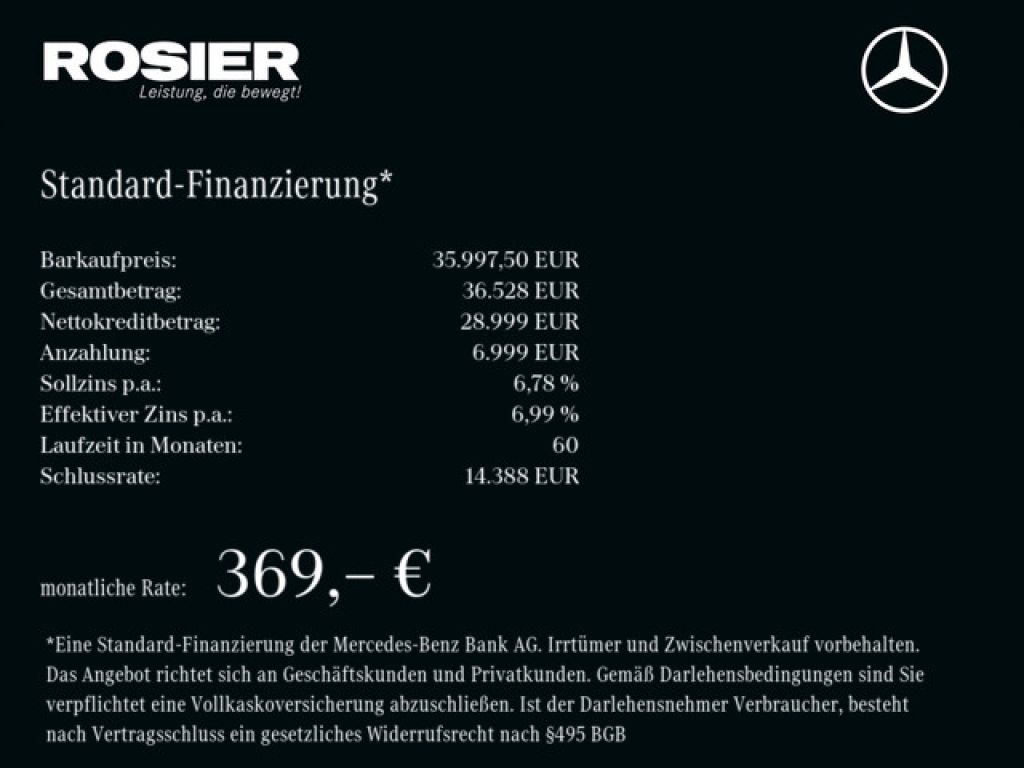 Fahrzeug-Nr.: 213602. Garantie Qualitätssiegel: Garantie, Mercedes-Benz Junge Sterne, Mercedes-Benz Junge Sterne Transporter. Assistenzsysteme: 360-Grad-Kamera, Frontkamera, Rückfahrkamera, Geschwindigkeitsbegrenzer, Lichtsensor, Umgebungskamera, Park-Paket mit 360 Grad Kamera, Seitenwind-Assistent. Licht: Kurvenlicht, Abbiegelicht, adaptives Bremslicht, Nebelscheinwerfer-/Funktion, Tagfahrlicht, Leuchtweitenregulierung. Media Infotainment: Touchscreen-Display, Radio, Audiosystem MP3-fähig, DAB Tuner, USB-Schnittstelle/Anschluss, Bluetooth Schnittstelle, Freisprecheinrichtung, Sprachsteuerung-/Bedienung, Induktionsladeschale für Smartphone / Wireless Charging, MBUX Multimediasystem, Musikstreaming integriert. Sicherheit Technik: Elektronische Bremskraftverteilung (EBV), Fahrerairbag, aktiver Bremsassistent, Alarmanlage, Antriebsschlupfregelung (ASR), Gurtanlegekontrolle, Komfort Klima: Spiegel elektrisch klappbar, Telematik/Notrufsystem (Vorbereitung), Bordcomputer, Service-Intervall-Anzeige, elektr. Spiegel beheizt, Zentralverriegelung mit Fernbedienung, 12V Steckdose, Akustik Paket, ATA / Aussentemperaturanzeige, Beifahrerdoppelsitzbank, Center Lock Schalter, Colorglas, Fahrerschwingsitz, Heckfluegeltüren 270 Grad, Mittelarmlehne, Schiebetür rechts, schlüsselloser Motorstart, Reifen Felgen: Ganzjahresreifen. Interieur Design: Multifunktionslenkrad, Bedienelemente am Lenkrad, Deckenleuchte, Lenkradverstellung. Gepäck- / Ladehilfen: Laderaumpaket, Verzurrschiene(n). Umwelt Laden: EURO 6d, Start/Stopp Automatic, Weitere Informationen: Hochdach, Erstbesitz, Heckauftritt, Holzboden, Innenverkleidung Laderaum, LKW-Zulassung, Scheckheft, Trennwand, unfallfrei. lade paket Instrumententafel, Seitliche Markierungsleuchten, Kommunikationsmodul UMTS / LTE, Vorderachse verstaerkt, Vorderachse mit erhoehter Traglast, LED-Lichtband im Laderaum, Laderaumbeleuchtung ueber Bewegungsmelder, Radkasten beladbar, Ablagefach oberhalb Frontscheibe, Ablagefach mit Deckel, Komfortbeleuchtung im Fahrgast-/Laderaum, Ablagefach, Haupttank 93 Liter Ein Plus3 Finanzierungsbeispiel der Mercedes-Benz Bank GmbH, Siemensstraße 7, 70469 Stuttgart, für Privatkunden. Ist der Darlehens-/Leasingnehmer Verbraucher, besteht nach Vertragsschluss ein gesetzliches Widerrufsrecht nach 495 BGB. Bonität vorausgesetzt. Gemäß den Darlehensbedingungen ist für das Fahrzeug eine Vollkaskoversicherung abzuschließen. Alle genannten EUR-Werte verstehen sich einschließlich 19 gesetzlicher Umsatzsteuer. Das Angebot versteht sich zzgl. Kosten für Zulassung. Weitere Bilder zu diesem Fahrzeug finden Sie auf unserer Homepage www.rosier.de. Entdecken Sie den Rosier Onlineshop ? Ihr Experte für hochwertiges Autozubehör und exklusive Lifestyle-Artikel zu attraktiven Preisen! Von stilvollen Felgen bis hin zu innovativer Fahrzeugtechnik ? wir bieten alles, was Ihr Auto einzigartig macht. Profitieren Sie von unschlagbarem Preis-Leistungs-Verhältnis und schneller Lieferung. Jetzt Ihre Favoriten sichern u