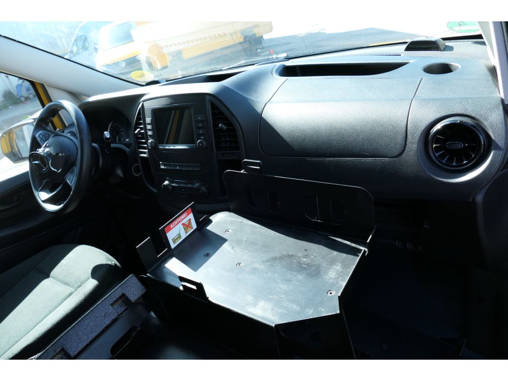 Audiosystem Audio 30 (DAB, Bluetooth), Außenspiegel elektr. verstell- und heizbar, beide, DAB-Tuner (Radioempfang digital), Einschaltautomatik für Fahrlicht, Fußmatten Allwetter, Fzg. ohne Sitz im Fahrerhaus, rechts, Geschwindigkeits-Begrenzeranlage 100 km/h, Geschwindigkeits-Begrenzeranlage 8 km/h, Rückwärtsgang, Klemmleiste für elektr. Anschlüsse (Sitzkasten Fahrersitz), Komfortbeleuchtung im Fahrgast-/Laderaum, Laderaumleuchte LED, Lenkrad mit Multifunktion inkl. Reiserechner, Parametrierbares Sondermodul, Parktronic-System (PTS), Rückfahrkamera, Schiebetür Lade-/Fahrgastraum links, Schulter-Becken-Airbag (Thorax-Pelvis-Sidebag) Fahrerseite, Sitzbezug / Polsterung: Stoff Rawson, Sitze im Fahrerhaus: Fahrersitz mit Lendenwirbelstütze, Sitze im Fahrerhaus: Fahrersitz plus (mit ebener Sitzfläche), Sonderlackierung, Verkleidung im Lade-/FG-Raum: Standard, Zweiwege Lautsprecher vorn