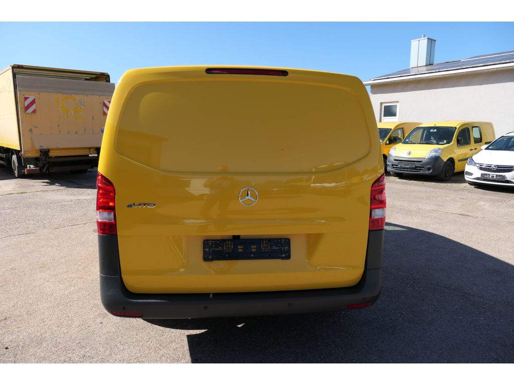 3. Bremsleuchte, Adaptives Bremslicht, Airbag Beifahrerseite, Airbag Fahrerseite, Akustischer Umfeldschutz (Außensound), Anfahrhilfe (Berganfahr-Assistent), Außentemperaturanzeige, Bremsassistent, Elektromotor 85 kW (cont. 70 kW), Fahrassistenz-System: aktiver Bremsassistent, Fahrassistenz-System: Attention-Assist (Müdigkeitserkennungs-Sensor), Fahrassistenz-System: Pannenmanagement, Fahrassistenz-System: Seitenwind-Assistent, Getriebe für Elektrofahrzeug, Getränkehalter vorn, Gurtstraffer, Handschuhfach abschließbar, HV-Batterie 60 kWh, Karosserie/Aufbau: Kasten Standard, Kommunikationsmodul (LTE) für digitale Dienste, Ladeleistung HV-Batterie 11 kW (Wechselstrom AC), Ladeleistung HV-Batterie 50 kW (Gleichstrom DC), Laderaumtrennwand durchgehend, Lenkrad (Lenksäule mech. verstellbar), Leuchtweitenregelung, Mercedes-Benz Notrufsystem, Modellpflege, Nebelschlussleuchte, Radstand 3430 mm, Schiebetür Lade-/Fahrgastraum rechts, Servolenkung elektro-mechanisch, Sitze im Fahrerhaus: Fahrersitz heizbar, Stahlfelgen 6, 5x17, Steckdose (12V-Anschluß) im Fahrerhaus, Verkleidung im Lade-/FG-Raum: Hartfaser halbhoch, Vlies-Batterie 92 Ah, Wartungsintervall-Anzeige Assyst, Wärmeschutzverglasung, Zul. Gesamtgewicht 3, 20 t