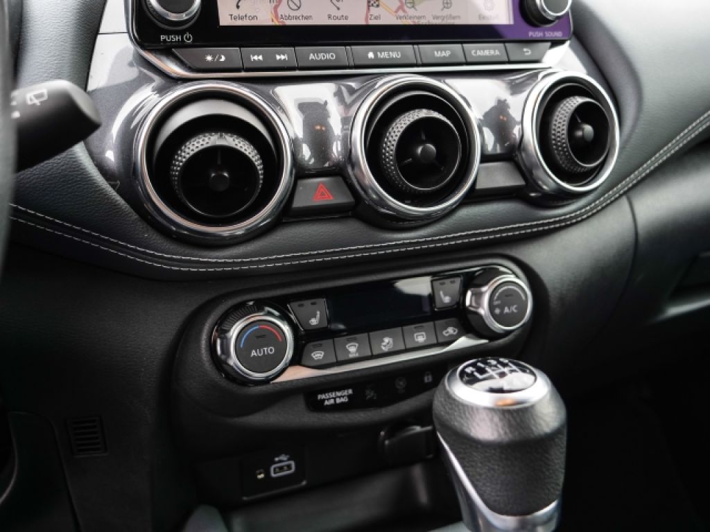 - Weiteres: Reifendruck-Kontrollsystem, Sitzbezug / Polsterung: Stoff, Geschwindigkeits-Regelanlage (Tempomat), Mittelarmlehne vorn, Rückfahrkamera, Scheibenwischer mit Regensensor, Scheinwerfer LED, Schließ-/Startsystem intelligent key, Reifen-Reparaturset, Ambiente-Beleuchtung, Dachspoiler, LM-Felgen, Einparkhilfe hinten, Schadstoffarm nach Abgasnorm Euro 6d-TEMP, Fahrmodusschalter, Sportsitze vorn (Monoform-Design), Innenraumfilter: Pollenfilter, Audiosystem: Radio, Außenspiegel mech. von innen verstellbar, Lenkrad (Leder) mit Multifunktion, Frontscheibe heizbar, Geschwindigkeits-Regelanlage (Tempomat) mit Abstandsregelung, Around View Monitor (360° Umgebungsansicht), Lenksäule (Lenkrad) höhenverstellbar, Start-Stop-Knopf, Airbag Fahrer-/Beifahrerseite und Seitenairbag vorn, Audio-/Bordcomputerbedienung am Lenkrad, Kopf-Airbag-System, USB-Schnittstelle, AUX-IN-Anschluss (AUX-IN), Rücksitz geteilt/klappbar, Gepäckraumabdeckung / Rollo, Service-System: Nissan Connect Services, Anti-Blockier-System (ABS), Außenspiegel elektr. verstellbar, Metallic-Lackierung, Aktive Fahrkomfortregelung (Fahrwerksdämpfung), aktiver Spurhalteassistent, mit korrigierendem Bremseingriff, aktiver Spurhalteassistent, mit korrigierendem Bremseingriff, Antriebsart: Frontantrieb, Außenspiegel elektr. anklappbar, Außentemperaturanzeige, Ausstattungs-Paket: Nissan Connect, Ausstattungs-Paket: Nissan Connect Navigationssystem, Autonomer Notbrems-Assistent, Beifahrerairbag abschaltbar, Berg-Anfahr-Assistent, Blinkleuchte in Außenspiegel integriert, Bluetooth-Schnittstelle, Bremsassistent (Nissan Brake-Assist), Dachantenne im Haifischflossen-Design, Einparkhilfe vorn und hinten, Elektr. Bremskraftverteilung (EBD), Elektron. Stabilitäts-Programm, Fahrassistenz-Paket Pro, Fahrer-Informations-System (FIS) mit Farbdisplay, Farbdisplay (8 Zoll), Fensterheber elektrisch vorn und hinten, Fernlichtassistent, Fußgängererkennung, Geschwindigkeits-Begrenzeranlage, Infotainment mit Touchscreen, Isofix-Aufnahmen für Kindersitz, Kamerasystem Around View, Klimaautomatik, Kurvenbremskontrolle (Aktive Spurkontrolle), Leseleuchte, Motor 1,0 Ltr. - 86 kW 12V KAT, Müdigkeitserkennungs-Sensor, Navigationssystem, Nebelscheinwerfer LED, Park-Assistent mit 360° Bewegungssensoren, Parkbremse elektrisch, Querverkehrs-Assistent Heck, Radioempfang Digital (DAB), Radioempfang digital (DAB+), Sicherheitssystem ERA GLONASS mit automatischem Notruf, Sitzheizung vorn, Sitzhöhenverstellung Fahrersitz, Smartphone Schnittstelle, Sprachbediensystem Spracherkennung, Start/Stop-Anlage, Technologie-Paket Getriebe Manuell, Totwinkel-Assistent, Türverkleidung Kunstleder, Verglasung hinten abgedunkelt, Verkehrszeichenerkennung, Winter-Paket