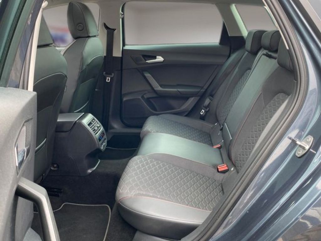 Blinkleuchten LED in Außenspiegel integriert, Bluetooth-Schnittstelle mit Freisprecheinrichtung integriert, Bordcomputer, Dachreling, Durchladeeinrichtung (Mittelarmlehne hinten), Fahrprofilauswahl (SEAT Drive Profile), Müdigkeitserkennung, Spurhalteassistent, Umfeldbeobachtungssystem (Front assist) mit City-Notbremsfunktion, Climatronic 3-Zonen, Kombiinstrument digital (virtual cockpit), Lenkrad (Sport/Leder) mit Multifunktion, LM-Felgen, Mild-Hybrid 110 kW (Motor 1,5 Ltr. - 110 kW eTSI ACT), Nebelscheinwerfer LED mit Abbiegelicht, Notrufsystem, Otto-Partikelfilter (OPF), Parkbremse elektrisch mit Auto-Hold-Funktion, Pedale Aluminium-Design, Radioempfang digital (DAB+), Seitenscheiben hinten und Heckscheibe abgedunkelt, Sitz vorn links höhenverstellbar, Sitz vorn rechts höhenverstellbar, Sitzbezug / Polsterung: Stoff, Sport-Fahrwerk, Sport-Komfortsitze vorn, Start/Stop-Anlage, Stoßfänger FR-Design