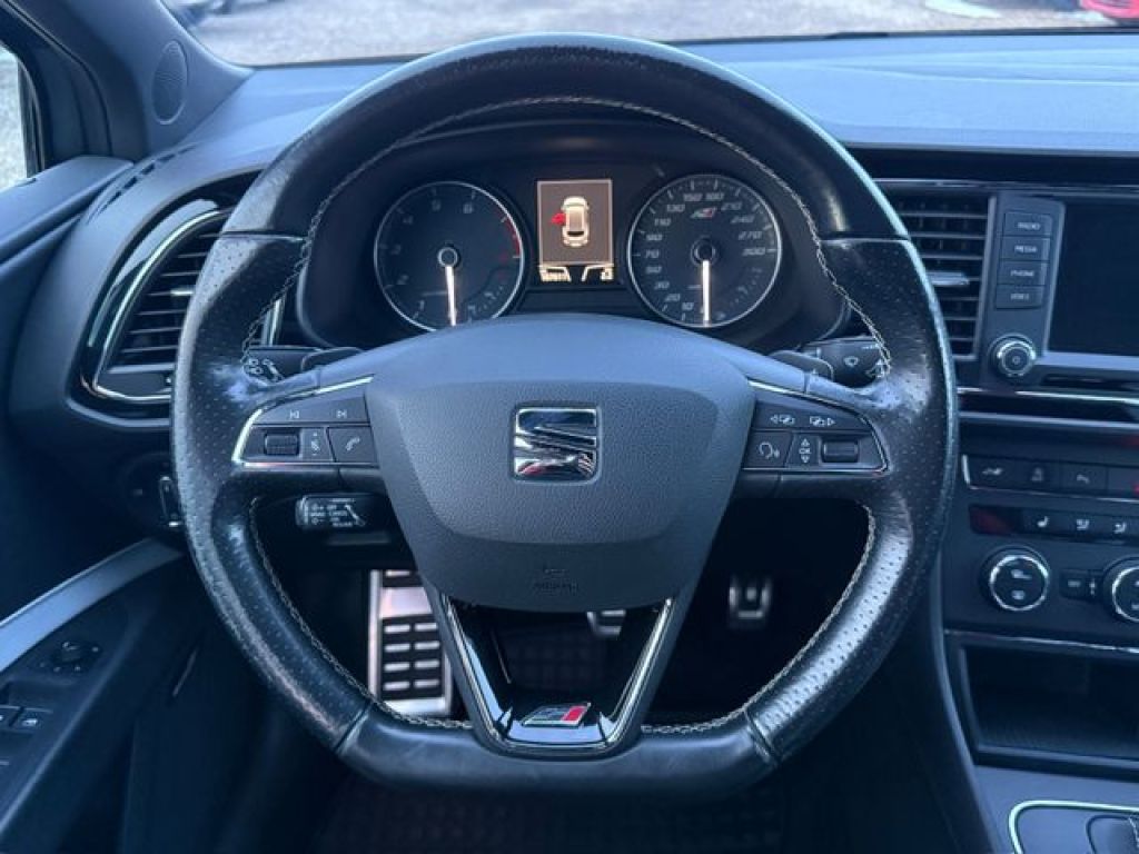 3. Bremsleuchte, Ablage-Paket, Ablagetasche an Vordersitzlehnen, Airbag Fahrer-/Beifahrerseite, Außenspiegel elektr. verstell-, heiz- und anklappbar, beide, Außentemperaturanzeige, Bordcomputer, Bremsassistent, Bremssättel Rot lackiert mit Schriftzug, Dynamic-Paket, Elektron. Differentialsperre (EDS), Fahrassistenz-System: Berganfahr-Assistent (Hill-Holder), Fahrassistenz-System: Fahrprofilauswahl (SEAT Drive Profile), Fensterheber elektrisch hinten, Gepäckraumabdeckung / Rollo, Heckspoiler, Innenraumlicht-Paket LED, Isofix-Aufnahmen für Kindersitz, Karosserie: 5-türig, Klimaanlage Climatronic 2-Zonen, Knieairbag Fahrerseite, Kofferraumbeleuchtung, Kopf-Airbag-System, Kopfstützen hinten (3-fach), Laderaumboden variabel und herausnehmbar, Lendenwirbelstütze Sitz vorn links, verstellbar, Lendenwirbelstütze Sitz vorn rechts, verstellbar, LM-Felgen, Mittelarmlehne hinten, Motor 2,0 Ltr. - 206 kW 16V TSI, Reifenkontroll-Anzeige, Rücksitzlehne geteilt/klappbar (1/3-2/3), Rücksitzlehnen umklappbar mit Fernentriegelung im Kofferraum, Schadstoffarm nach Abgasnorm Euro 6, Schalt-/Wählhebelgriff Leder, Scheinwerfer LED, Seitenairbag, Seitenscheiben hinten und Heckscheibe abgedunkelt, Sitz vorn links höhenverstellbar, Sitz vorn rechts höhenverstellbar, Sitzbezug / Polsterung: Leder / Alcantara, Sonnenblende links mit Spiegel (beleuchtet), Sonnenblende rechts mit Spiegel (beleuchtet), Sport-Fahrwerk FR / Cupra, Sport-Schalensitze vorn mit integrierten Kopfstützen, Start/Stop-Anlage, Steckdose (12V-Anschluß) im Koffer-/Laderaum, Steckdose (12V-Anschluß) vorn, Wärmeschutzverglasung