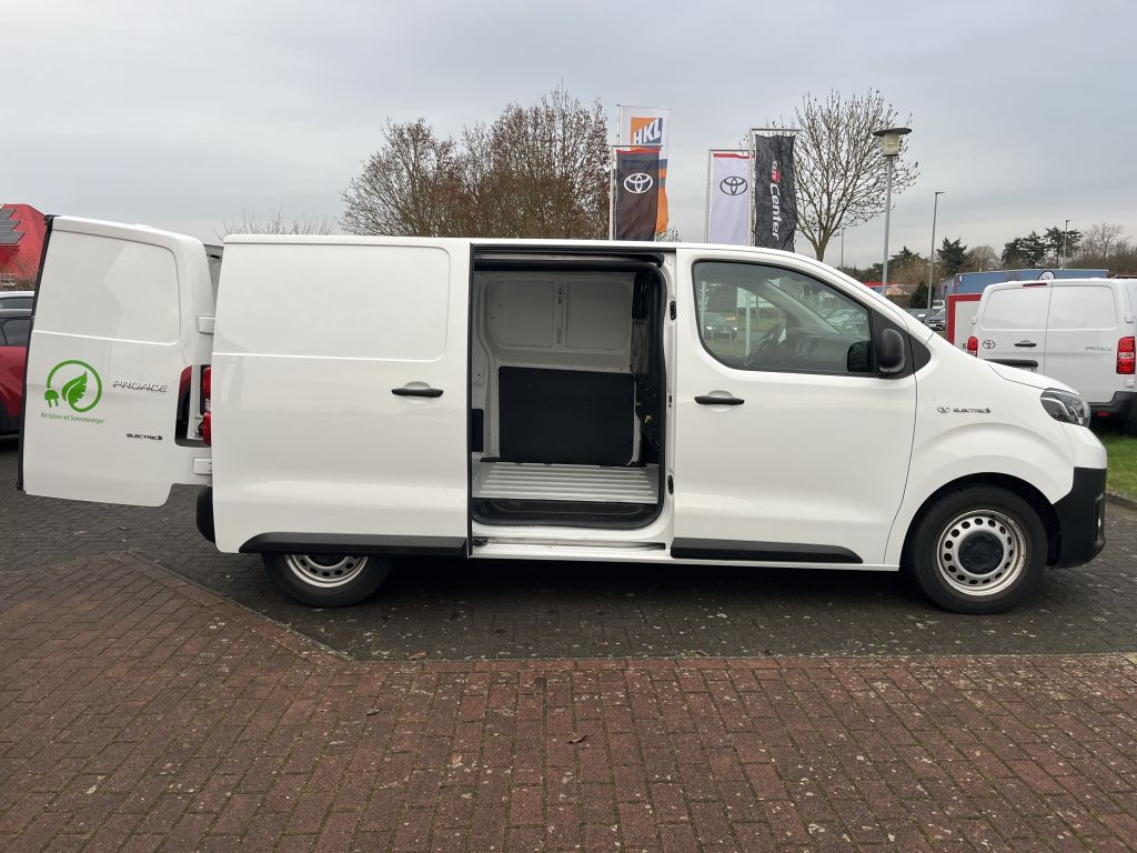 Multi-Informations-Display, Multimedia-Audiosystem Toyota ProTouch, Ganzjahresreifen, Anhängerkupplung Fest, 3-Punkt-Sicherheitsgurte auf allen Sitzp, ABS mit EBD, Ablagen, Airbag: Frontairbags Fahrer/Beifahrer, Anzeige Batterie-Ladezustand, Außenspiegel elektr. verstellbar, behei., Brems-Assistent (BA), Bremsleuchte, dritte, LED, Deckenbeleuchtung Laderaum, ECO-Drive-Monitor, Einparkhilfe, vorne und hinten, Energieverbrauchsanzeige, Ersatzrad, befestigt unter dem Fahrzeug., Fahrer-Aufmerksamkeitsassistent, Fahrmodus-Selektor, Fensterheber vorne, elektrisch, Geschwindigkeitsregelanlage/-begrenzer, Getriebe: D1-stufenlose Automatik, Heckflügeltüren, geschlossen, Klimaanlage, manuell, Kopfstützen vorn, höhenverstellbar, Lackierung: Uni-Lackierung, Ladekabel: Haushalt, 230V Schuko, 8A, Lenkrad, höhen- und längsverstellbar, Leselampen vorne, Leuchtweitenregulierung, Nebelscheinwerfer, Onboard-Charger (11 kWh), Paket: Sicht-Paket, Parkbremse elektrisch, Polster: Stoff/Teil-Vinyl, Reifendruck-Warnsystem (TPWS), Räder: Stahlfelgen 16"", 215/65 R16, Schiebetür rechts, geschlossen, Servolenkung, elektrisch, Sitze: Comfort Fahrersitz, Sitze: Doppelbeifahrersitzbank, Sitze: Fahrersitz höhenverstellbar, Sitze: Fahrersitz höhenverstellbar, Sitze: Lordosenstütze Fahrer, Steckdosen 12 V, Steckdosen 12 V, Steckdosen 12 V im unteren Handschuhfach, Tagfahrlicht, Toyota Smart Cargo, Trennwand geschlossen mit Fenster, VSC (elektronische Stabilitätskontrolle), Verzurrösen (6) im Laderaum, Wegfahrsperre, elektronisch, Zentralverriegelung m. Funkfernbedienung,