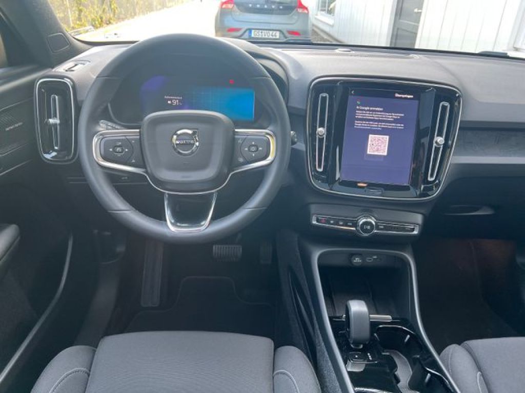 Airbag Beifahrerseite, Airbag Beifahrerseite abschaltbar, Airbag Fahrerseite, Ambiente-Beleuchtung erweitert, Anhänger-Stabilisierungs-Programm (TSA) Vorbereitung, Applikationen an den Seitenfenstern schwarz, hochglänzend, Audiobedienung am Lenkrad, Außen-/Innenspiegel mit Abblendautomatik, Außenspiegel elektr. anklappbar, Außenspiegel elektr. verstell- und heizbar, beide, Außenspiegel schwarz, hochglänzend, Außenspiegel Weitwinkel, Befestigung für Abfallbeutel im Fond, Beinauflage manuell einstellbar, Sitze vorn, Betätigung Heckklappe/-Deckel automatisch, Blinkleuchten LED in Außenspiegel integriert, Convenient Entry & Start, Dachhimmel Anthrazit, Dachreling schwarz, hochglänzend, Digitale Instrumentierung 12,3"-Display 2. Generation, Durchladeeinrichtung (Mittelarmlehne hinten), Einstiegsleisten mit Aluminiumeinlage, Elektromotor 170 kW (cont. 80 kW), Erste Hilfe-Kasten / Verbandkasten, Fahrassistenz-Paket: Driver Assistance, Fahrassistenz-Paket: Driver Awareness, Fahrassistenz-Paket: Safety Assistance, Fahrassistenz-System: Bergabfahrkontrolle (HDC), Fahrassistenz-System: Berganfahr-Assistent (HSA), Fahrassistenz-System: Fernlichtassistent, Fahrassistenz-System: Multikollisionsbremse (Multi Collision Brake), Fahrassistenz-System: Run-off Road Protection, Fensterheber elektrisch vorn + hinten, Frontstaufach / Frunk (Kofferraum, vorn), Gepäckraum-Abtrennung (Netz), Getriebe für Elektrofahrzeug, Getränkehalter in Mittelkonsole, Gurtstraffer, Heckscheibe heizbar, Induktionsladeschale für Smartphone, Infotainment-System: Android (DAB+) mit Premium Sound (Harman-Kardon), Isofix-Aufnahmen für Kindersitz, Karosserie: 5-türig, Klimaautomatik 2-Zonen, Knieairbag Fahrerseite, Kopf-Airbag-System, Kopfstützen hinten elektr. umklappbar, Ladekabel (6,0 m) mit Typ 2-Stecker (Mode 3), Lendenwirbelstützen vorn, elektr. verstellbar (4-Wege), Lenkrad (Sport), Lenkrad mit Multifunktion, Lenkradheizung, Lenksäule (Lenkrad) höhen-/längsverstellbar, LM-Felgen, Luftqualitäts-Überwachungssystem erweitert (Clean Zone Interior Package CZIP), Make-up-Spiegel beleuchtet, Mittelarmlehne hinten mit Getränkehalter, Modellpflege, Motorsound-System (Audible Vehicle Alert System, AVAS), Nebelscheinwerfer LED, Nebelschlussleuchte, One Pedal Drive (elektronisches Gaspedal), Parkbremse elektrisch, Radioempfang digital (DAB+), Radstand 2702 mm, Reifen-Reparaturset, Reifendruck-Kontrollsystem, Rückfahrkamera mit 360° Surround View, Rücksitz geteilt, Rücksitzlehnen klappbar, Scheinwerfer LED, Schiebe-/Hebedach elektrisch (Glas), Schleudertrauma-Schutzsystem (WHIPS), Seitenairbag vorn, Sicherheitsgurte vorn höhenverstellbar, Sitz vorn links neigungsverstellbar, Sitzbezug / Polsterung: Textil, Sitze vorn elektr. verstellbar (links mit Memory), Sitzheizung vorn, Standheizung elektrisch, Steckdose (12V-Anschluß) in Mittelkonsole vorn, Taschenhaken im Gepäckraum, Textilfussmatten, Türsicherungssystem hinten elektrisch, USB-Anschlüsse, je 2 vorn und hinten, Verglasung getönt, Volvo ON CALL, Warnanlage für Sicherheitsgurte vorn und hinten, Wärmepumpe zur Reichweitenoptimierung, Regensensor, Sitzheizung vorn