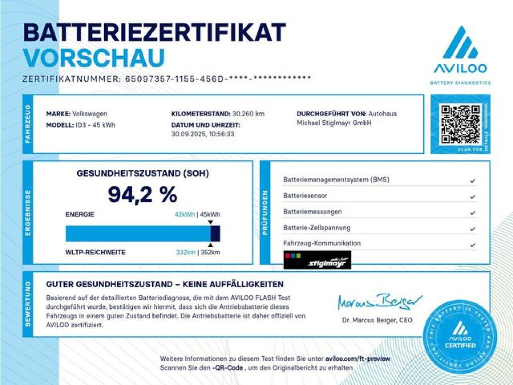 Fahrzeug-Nummer: V16082, Aus erster Hand, HU/AU neu, Sprachbedienung, Navigationssystem, Klimaautomatik, LED-Scheinwerfer, Interieur Stoff, Abstandstempomat, Einparkhilfe vo + hi, Sitzheizung, Radio mit MP3-Option, Elektrische Fensterheber, Window/Kopfairbags, ESP (el. Stabilitäts Programm), Ehem. empfohlener Verkaufspreis (UPE) 36.874 EUR, gletscherweiß Metallic, 5 Sitzplätze, Radio Ready 2 Discover, Apple CarPlay, Android Auto, Interieurfarbe Grau, Alufelgen 20 Zoll, ABS, Keyless-Go Startsystem, Elektronische Wegfahrsperre, Traktionskontrolle, Schadstoffklasse Euro 6d, Servo-Lenkung, Geteilte Rückbank, Isofix-System, Lenkrad beheizt, Lichtsensor, Reifendruckkontrolle, Scheckheftgepflegt, Bluetooth Anbindung, Waschdüsen beheizt, Wärmedämmendes Glas, 4 Türen, Garantie, Heckantrieb, Multifunktionslenkrad, Spiegel (el.) klappbar heizbar, CO2 Effizienzklasse (gewichtet): A, Elektr. Reichweite (komb.) 343 KM, Elektr. Reichweite (City) 466 KM, Ambiente-Beleuchtung, Auffahr-Warnsystem, Spurhalteassistent, Müdigkeitswarnsystem, LED-Tagfahrlicht, Nichtraucherfahrzeug, Notbremsassistent, Touchscreen, Notrufsystem, Umweltplakette grün, Verkehrsschilder-Assistent, Deutschland, Center-Airbag, LED-Rückleuchten, Umfeldbeleuchtung mit Logoprojektion, Ambientebeleuchtung 10-farbig, App-Connect inkl. App-Connect Wireless für Apple CarPlay und Android Auto, Beifahrerspiegelabsenkung, Automatische Distanzregelung ACC stop go, Fahrprofilauswahl, Telefonschnittstelle Comfort, Neupreis: EUR 36.874,--, Technisch generiertes Bild: Tatsächlicher Zustand und Ausstattung können davon abweichen. Vergleichen Sie hierzu die Zustands- sowie Ausstattungsbeschreibung, Änderungen, Zwischenverkauf und Irrtümer sind ausdrücklich vorbehalten. Die Beschreibung dient der allgemeinen Identifizierung des Fahrzeuges und stellt keine Gewährleistung im kaufrechtlichen Sinne dar. Fahrzeugabbildung zeigt Sonderausstattungen. Bildliche Darstellungen können vom Auslieferungsstand abweichen. Ausschlaggebend ist die Beschreibung gemäß Kaufvertrag